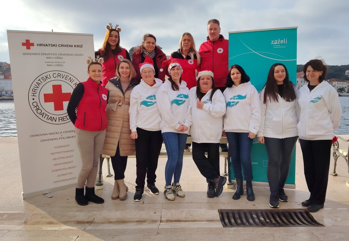 “Sretan Božić i Novu godinu želi vam Gradsko društvo Crvenoga križa Mali Lošinj – Cres”, poručili su okupljeni na Rivi lošinjskih kapetana u Malom Lošinju članovi GDCK Mali Lošinj – Cres i gerontodomaćice projekta Zaželi.