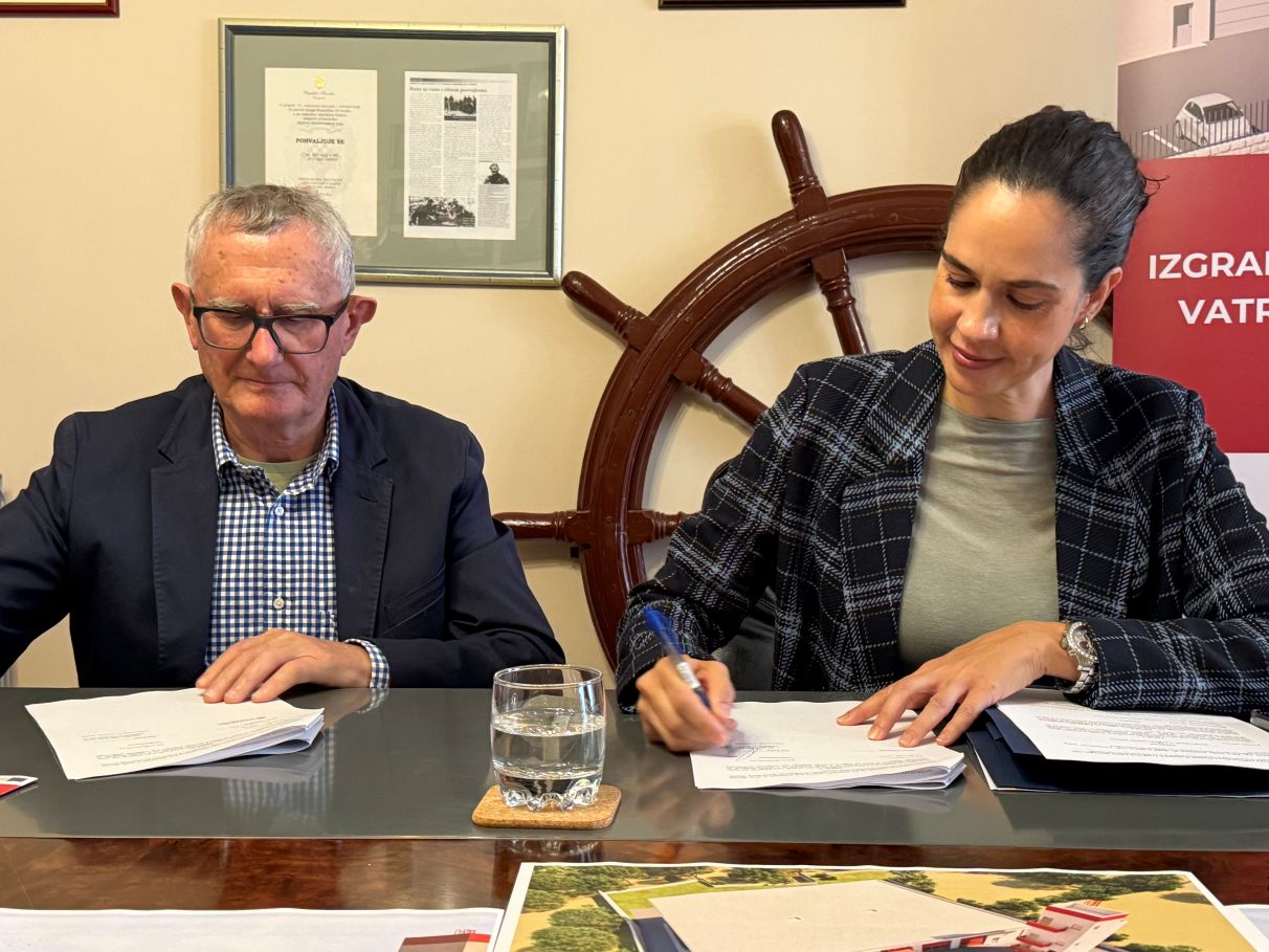 Gradonačelnica Ana Kučić uime naručitelja i predsjednik Uprave Radnika Križevci, Mirko Habijanec, uime izvođača, potpisali su ugovore o izvođenju radova na novome Vatrogasnom domu na Kalvariji u Malom Lošinju.
